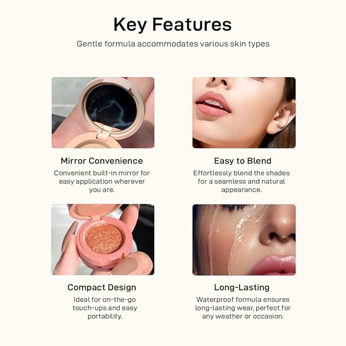 Compact Design: Small, easy to carry with a built-in mirror, perfect for travel and touch-ups on the go.